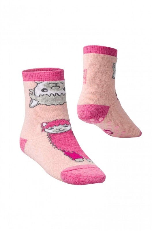Diese Kinder ABS Söckchen mit liebevoll gestaltetem Alpaka-Motiv bringen nicht nur Farbe, sondern auch Sicherheit in den Alltag. Die rutschhemmenden Noppen auf der Sohle sorgen für festen Halt auf glatten Böden – ideal für aktive Kinder, die gern toben und entdecken. Die hochwertige Naturfasermischung ist besonders weich, hautfreundlich und angenehm wärmend.